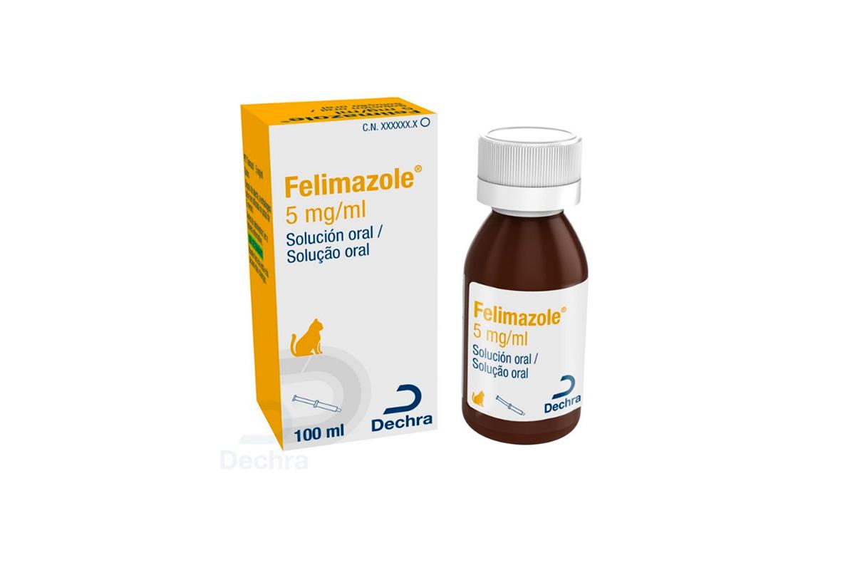 Felimazole Solución Oral 5 mg/ml contiene tiamazol Disponible en frasco de 30 ml o 100 ml con jeringa dosificadora Con sabor a miel 2 años de caducidad, 6 meses de caducidad una vez abierto Al ofrecer flexibilidad y precisión, Felimazole te ayuda a controlar el hipertiroidismo. Felimazole ofrece un enfoque versátil con la opción ...
