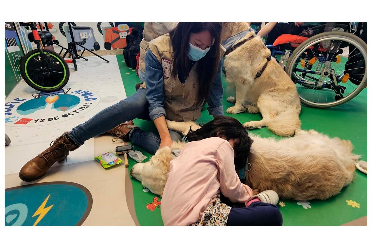 También tiene amplio recorrido la exitosa práctica del Hospital 12 de Octubre en este tipo de terapias, ya que en 2019 incorporó a los perros por primera vez en el país como una opción terapéutica añadida en la recuperación del paciente ingresado en la Unidad de Cuidados Intensivos Pediátricos y Reanimación -UCIP-REA-. Huellas de Colores, realizado en colaboración con la Cátedra de Animales y Sociedad de la Universidad Rey Juan Carlos, surgió como un proyecto de investigación que demostró que las intervenciones asistidas con animales reducen significativamente el dolor, el miedo y la ansiedad en niños ingresados en cuidados intensivos.