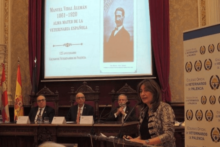 Más de un centenar de personas asistieron al acto conmemorativo del 125 aniversario del Colegio de Veterinarios de Palencia, que ha tenido lugar hoy en la sede de la Diputación, en el trascurso del cual se rindió un sincero homenaje a Manuel Vidal Alemán (1861-1920), fundador de la primera corporación profesional veterinaria en una provincia, inventor de artilugios para la clínica de grandes animales y divulgador científico para mejorar la ganadería y proteger la salud pública.
