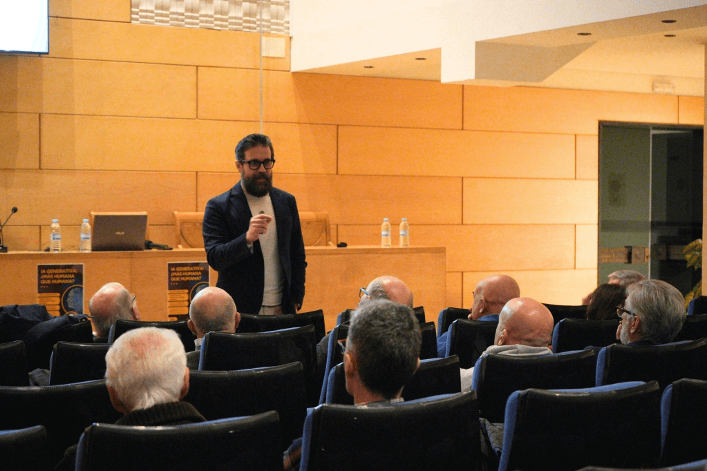 El Colegio de Veterinarios de Lugo ofreció el pasado viernes una innovadora conferencia sobre la aplicación actual de la inteligencia artificial generativa en el ámbito veterinario y sanitario. Bajo el título `IA Generativa: ¿más humana que humana?', el ingeniero Néstor Guerra protagonizó una sesión que tuvo lugar en horas en el salón de actos del edificio de los Colegios Sanitarios, en la calle Ramón y Cajal.