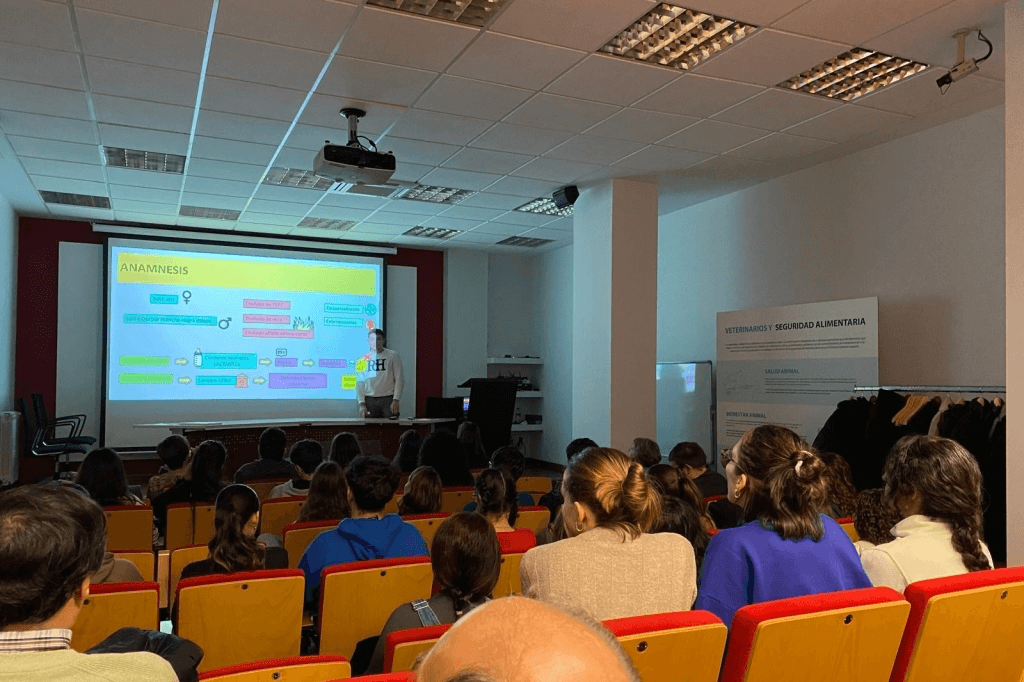 El Colegio de Veterinarios de Zaragoza ha acogido la presentación de casos y resultados de los alumnos del Servicio de Clínica de Rumiantes (SCRUM), del Hospital Veterinario de la Universidad de Zaragoza, con la presencia de Delia Lacasta, profesora del Departamento de Patología Animal de la Facultad de Veterinaria de Zaragoza; Mónica Espada, vocal de Ganadería y Medio Ambiente del Colegio, y de un centenar de colegiados y de estudiantes de la citada Facultad.