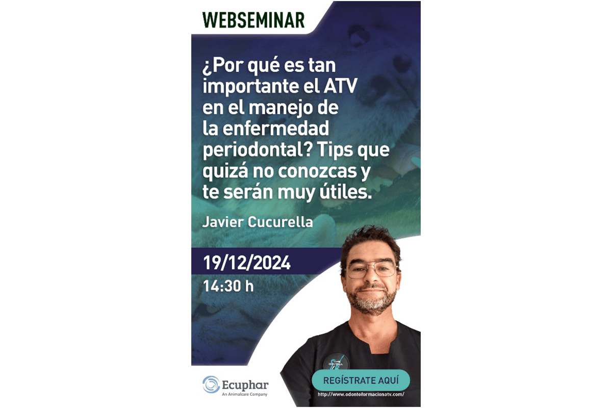 El próximo jueves 19 de diciembre de 2024, a las 14:30 horas, se celebrará un webinar gratuito dirigido a los Auxiliares Técnicos Veterinarios (ATV), enfocado en el manejo de la enfermedad periodontal en mascotas. Esta formación, impartida por el experto Javier Cucurella, busca analizar el papel de los ATV en la detección temprana de problemas odontológicos y concienciar a los dueños sobre la importancia del cuidado dental de sus mascotas.