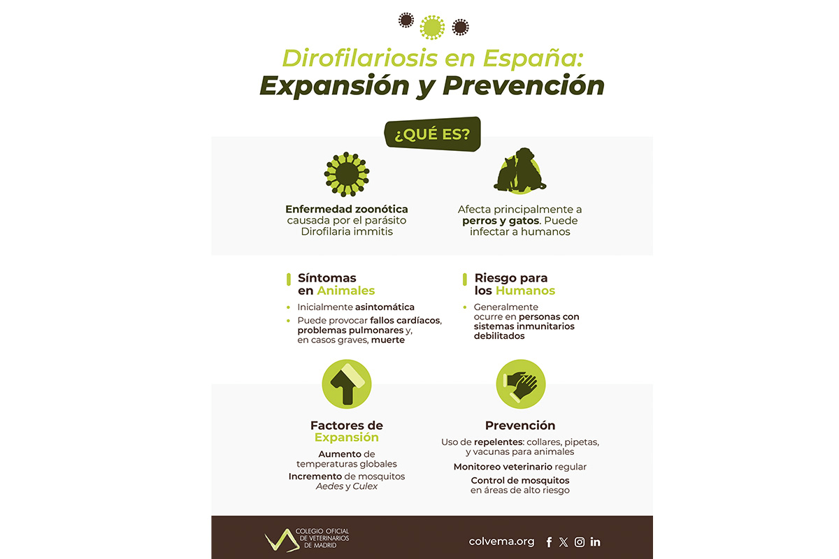 La dirofilariosis, conocida como la enfermedad del gusano del corazón, es una zoonosis que ha mostrado una preocupante expansión en Europa durante los últimos 15 años, desplazándose hacia el norte de la península ibérica. Esta enfermedad crónica es causada por el nematodo parasitario Dirofilaria immitis, que habita principalmente en la ...