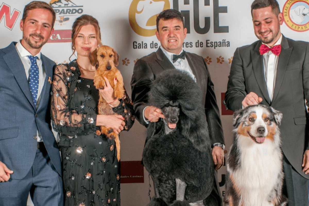 En el podio, `Norte', el caniche negro gigante de Rubén Sánchez, se llevó el primer puesto en el ranking tras una carrera espectacular. Con solo 9 meses, ya se proclamó Campeona del Mundo Joven 2022, logrando 15 Best in Show y el Campeonato Absoluto de España y Portugal en 2024. Su participación no solo se limita al mundo de las exposiciones, sino que también destaca en actividades de fisioterapia, ayudando a personas con parálisis cerebral.