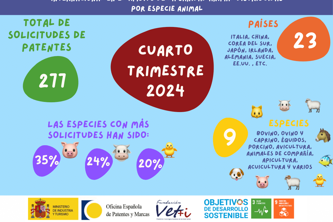La Fundación Vet+i y la Oficina Española de Patentes y Marcas (OEPM) colaboran de forma conjunta para la creación y publicación de los Boletines de Vigilancia Tecnológica de manera trimestral desde el 2011. Con la publicación de este último ya reúnen 56 Boletines de Vigilancia Tecnológica. El objetivo de estos documentos es proporcionar un acceso fácil y especializado a todas las solicitudes de patentes de Sanidad Animal procedentes de todo el mundo. Estas patentes incluyen todas las novedades referentes a la creación de nuevos productos, procesos, tecnologías o metodología para lograr la prevención, tratamiento y/o diagnóstico de diferentes enfermedades que afectan a distintas especies a nivel internacional.