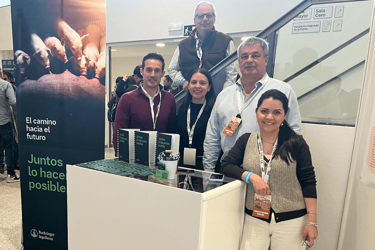 Con un programa articulado en torno a temas relacionados con reproducción, digitalización, sostenibilidad o alimentación del cerdo ibérico, entre otras cuestiones, la presencia de Boehringer Ingelheim Animal Health España giró en torno a la presentación de la campaña "Juntos lo hacemos posible". El video argumental fue proyectado a lo largo del evento entre las diferentes sesiones. Una acción para presentar la campaña directamente a los profesionales del sector porcino, auténticos protagonistas de esta iniciativa que pretende estrechar la relación con el colectivo veterinario, dar a conocer las herramientas para el desarrollo de la profesión, difundir los servicios de valor añadido que ofrece Boehringer Ingelheim y ser un aliado estratégico en una época de inestabilidad para el sector.