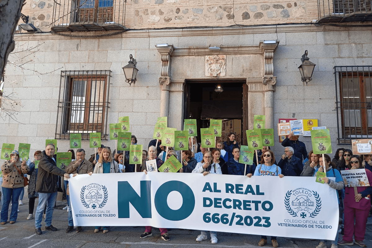 Cerca de un centenar de veterinarios se han unido a la concentración convocada por el Colegio de Veterinarios de Toledo para expresar su rechazo al Real Decreto que regula la distribución, prescripción, dispensación y uso de medicamentos veterinarios.