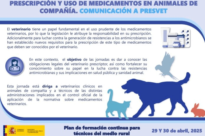 El Ministerio de Agricultura y Pesca (MAPA) ha programado un curso de formación para veterinarios clínicos y técnicos de control de las administraciones, dentro del plan de formación continua para técnicos del medio rural. La edición de este año está enfocada en la prescripción y uso de medicamentos en animales de compañía.