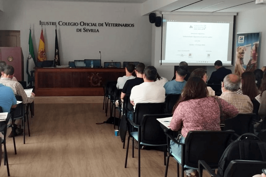 Impartidas en diferentes ciudades a nivel nacional, esta conferencia se organizó en la capital hispalense con la colaboración del Consejo Andaluz de Colegios Oficiales de Veterinarios y el Colegio de Veterinarios de Sevilla, en el salón de actos del ICOV de Sevilla, en horario de 16:00 a 20:30 horas, acudiendo un 40 veterinarios colegiados.