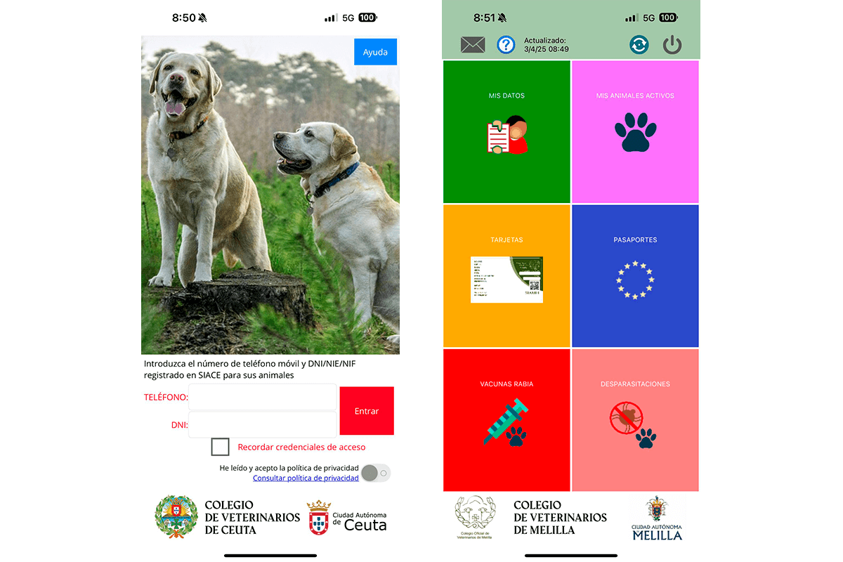 Los propietarios de animales de compañía en las Ciudades Autónomas de Ceuta y Melilla tienen ahora una poderosa herramienta al alcance de su mano. Los Colegios Oficiales de Veterinarios de Ceuta y Melilla han anunciado la integración de la aplicación móvil DATAPETS en sus respectivos registros de identificación de animales, SIACE (Sistema de Identificación Animal de Ceuta) y SIAMEL (Sistema de Identificación Animal de Melilla). Esta intuitiva y gratuita aplicación, desarrollada por los expertos de la división ANIMAL ID de Grupo CESTEL, ya es un referente en comunidades como Castilla y León y Aragón.