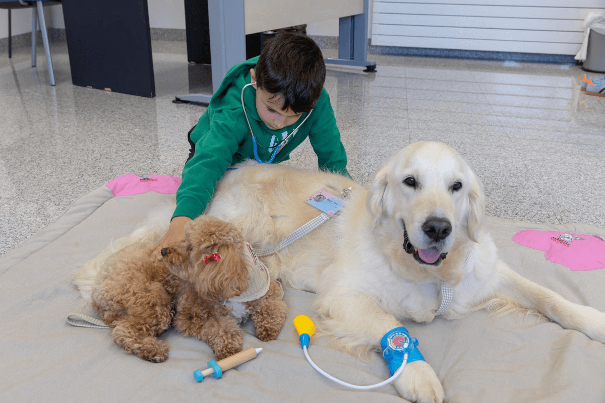 Marian Soteras detalla que "con los niños de Oncopediatría buscamos que vivan el hospital como un espacio menos hostil. A través del juego con los perros, bajan su nivel de ansiedad y se sienten más seguros. En los casos más complejos, como los niños con trastornos neurológicos o psiquiátricos, las sesiones individuales ayudan a trabajar la comunicación, la expresión emocional y el control de la impulsividad".