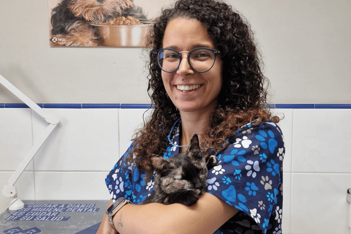 Nuestra siguiente entrevistada, María Perales, desarrolla su labor sanitaria en Coteve, una clínica pequeña donde a diario se enfrentan a cuestiones que van desde un plan vacunal hasta dar con un diagnóstico, o dotar de una solución cuando los tutores no disponen de capacidad económica o logística para trasladarse a centros más grandes. "Soy veterinaria generalista con especial interés en medicina interna y cirugía de tejidos blandos".