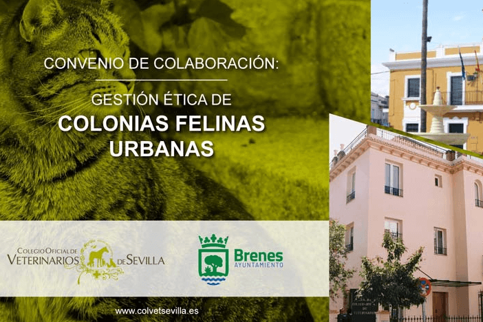 El Ayuntamiento de Brenes y el Ilustre Colegio Oficial de Veterinarios de Sevilla hemos firmado la extensión del convenio existente para la creación y desarrollo del Registro Municipal de Animales de Compañía, para abordar de forma conjunta la Gestión ética de las Colonias Felinas Urbanas del municipio a través del Método C.E.R..