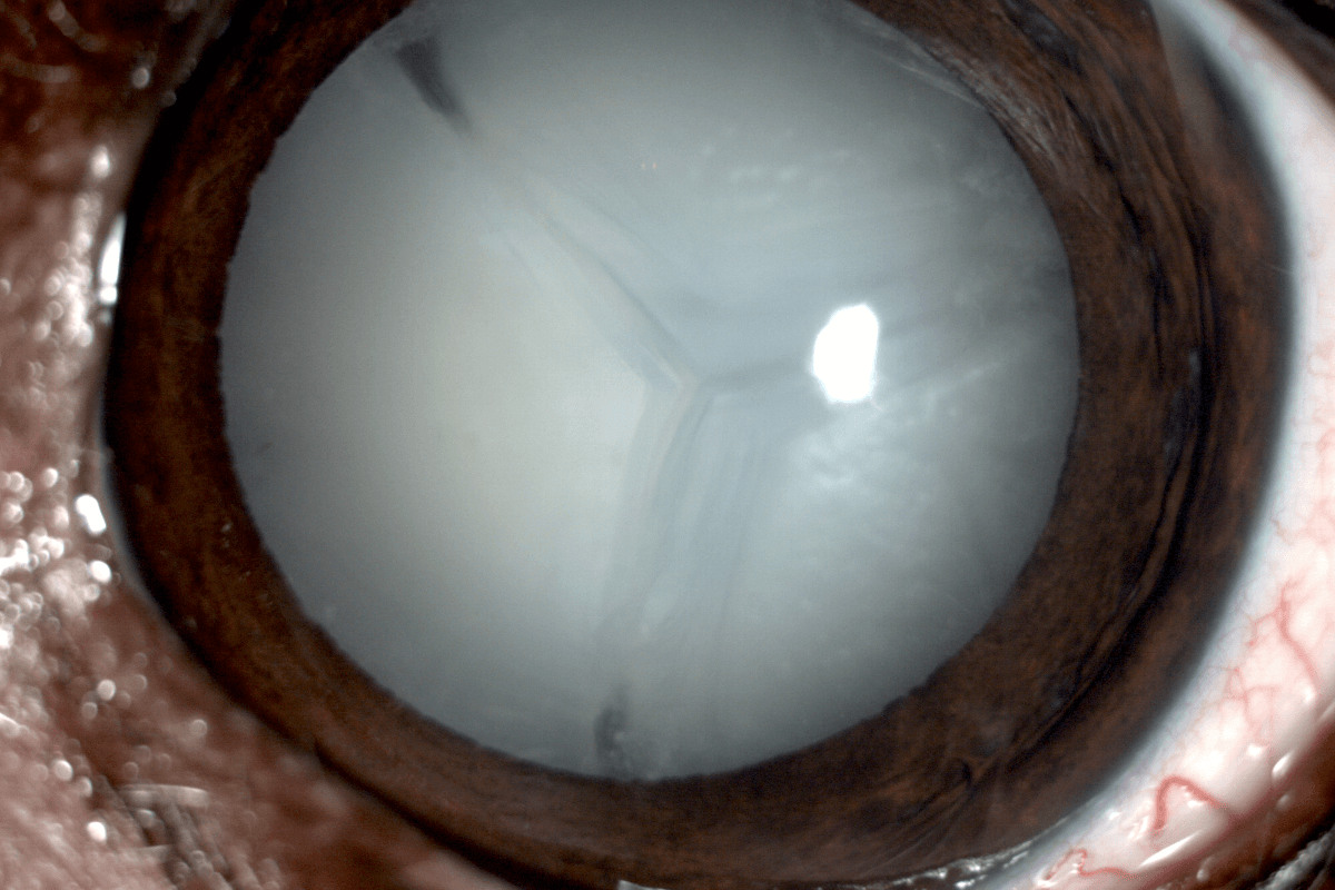 Una vez considerado apto para la intervención, el paciente fue operado bajo anestesia general mediante facoemulsificación del cristalino afectado y posterior implantación de una lente intraocular. Tras la cirugía, se administraron colirios antibióticos y antiinflamatorios, junto con medicación oral para controlar el dolor y la inflamación, asegurando así una recuperación segura y eficaz.
