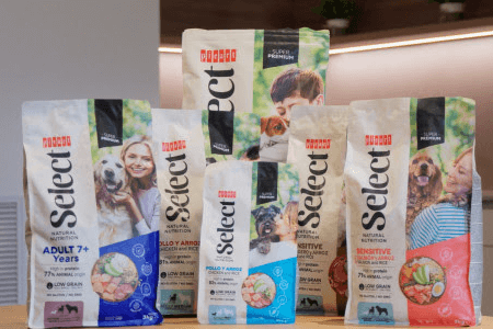 Con un abanico de quince productos, Select Dog ofrece soluciones específicas para cachorros, adultos y perros senior, así como para razas pequeñas, medianas y grandes. Cada producto parte de una receta completamente reformulada para adaptarse a las necesidades de cada etapa vital, y va mucho más allá de ajustar simplemente los niveles de proteína y grasa según la edad del perro, como era habitual hasta ahora.
