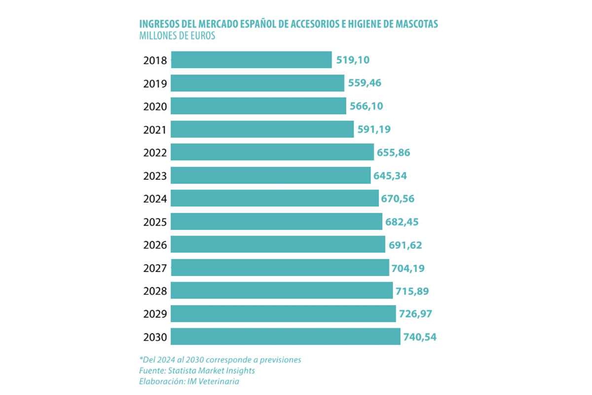 Los datos lo confirman: el mercado español de accesorios y productos de higiene para mascotas ha demostrado una notable capacidad de resistencia frente a las turbulencias económicas. En 2018, los ingresos alcanzaron los 519,10 millones de euros. Un año después, el crecimiento fue sólido, del 7,8%, confirmando el interés sostenido de los consumidores por invertir en el bienestar de sus animales.