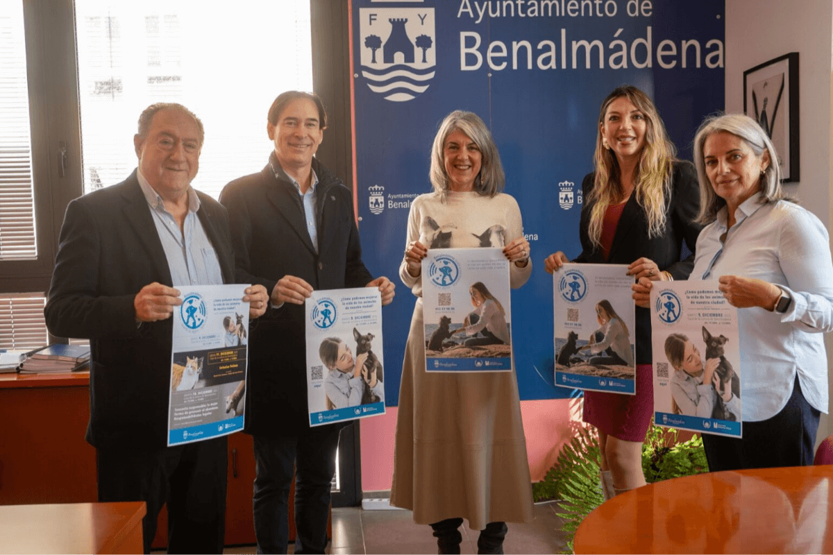 El Colegio de Veterinarios de Málaga y el Ayuntamiento de Benalmádena han presentado en la mañana del 1 de diciembre una campaña de tenencia responsable de animales de compañía con el fin de reforzar el compromiso del municipio con el bienestar animal, la salud pública y la convivencia ciudadana, a través de actividades formativas, divulgativas y de sensibilización de la mano de veterinarios profesionales. La campaña arrancará el 9 de diciembre con la charla '¿Cómo podemos mejorar la vida de los animales de nuestra ciudad?', a cargo del veterinario José Gutiérrez Palomino.