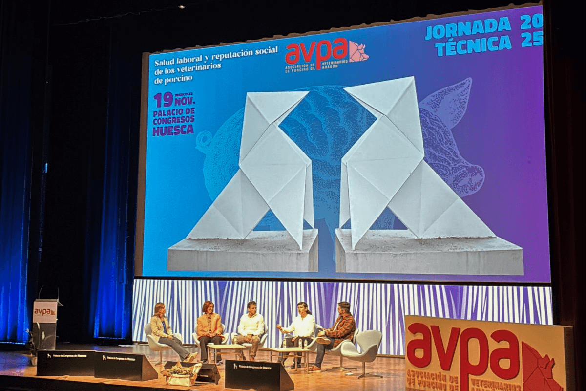 Durante la jornada, la veterinaria y psicóloga Lorena Millán presentó los resultados del estudio realizado junto a la UNED: "Estrés, salud laboral y reputación social de los veterinarios de porcino". Tras su intervención, Gemma Ticó (veterinaria experta en comunicación) y Laura Pérez (veterinaria y coach) protagonizaron un espacio de reflexión sobre la gestión de las emociones en el trabajo diario. Omar Tayara, triatleta olímpico, completó la programación con una charla sobre gestión del estrés y bienestar profesional.