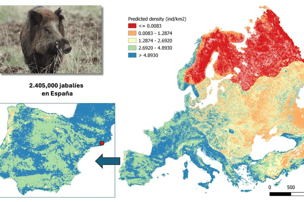 La coordinación internacional de expertos ofrece el primer mapa europeo de alta resolución de densidad de jabalí, una herramienta científica clave para orientar la gestión de brotes de Peste Porcina Africana y otras enfermedades infecciosas y el control sostenible a largo plazo de las poblaciones de jabalí.