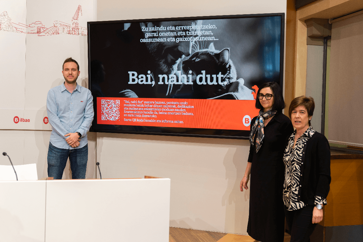 El concejal delegado del Área de Salud y Consumo del Ayuntamiento de Bilbao, Álvaro Pérez, ha presentado esta mañana los detalles de esta campaña que pretende promover las adopciones de mascotas, y que consistirá en la difusión de folletos informativos en diferentes puntos de la villa, como centros municipales, establecimientos del sector (clínicas veterinarias, peluquerías caninas y felinas, tiendas especializadas…) o sedes de asociaciones protectoras de animales.