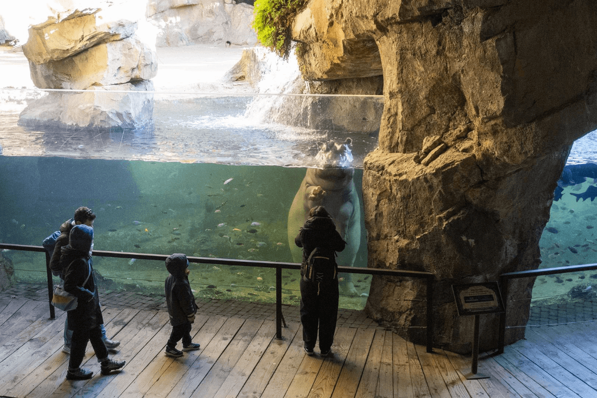 El hipopótamo común, por su parte, disfruta durante todo el año de agua a más de 20 grados centígrados, calentada de forma artificial en invierno, al igual que los hábitats acuáticos de las dos subespecies de cocodrilo que alberga el parque: el del Nilo y el menos conocido cocodrilo enano.
