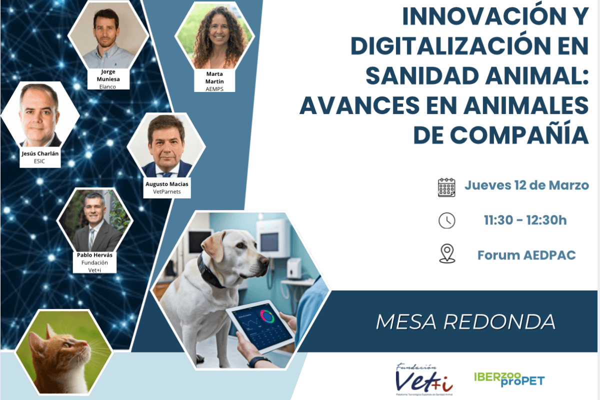 La Fundación Vet+i celebrará el próximo 12 de marzo de 2026, en el marco de Iberzoo-Propet y del Forum AEDPAC en IFEMA Madrid, la mesa redonda "Innovación y digitalización en sanidad animal: avances en animales de compañía", un encuentro que reunirá a representantes de la administración, la industria, la práctica clínica y expertos en inteligencia artificial para analizar cómo las nuevas tecnologías están transformando la farmacovigilancia, la gestión de datos y el diagnóstico veterinario.