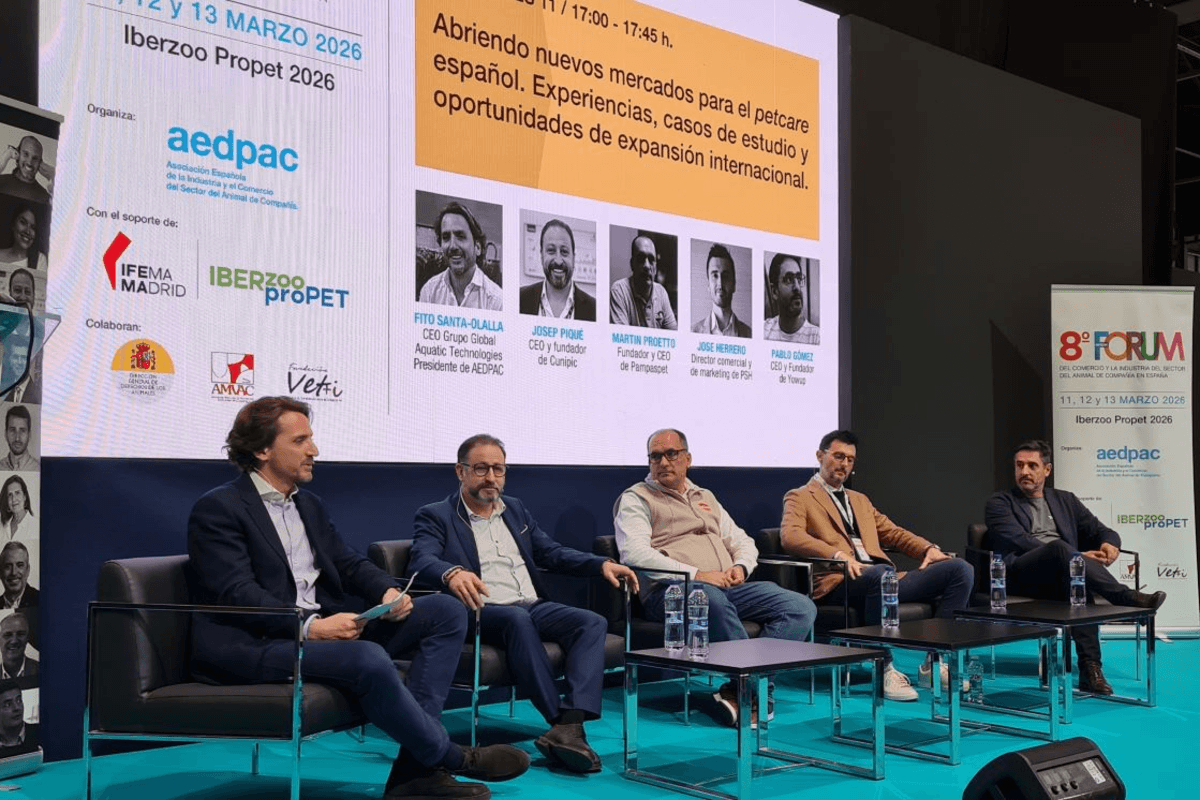 Expertos del sector veterinario con experiencia en internacionalización de productos participaron en una sesión del 8º FORUM AEDPAC, integrado en la feria de referencia Iberzoo Propet, que se celebra estos días en Madrid. El objetivo de la mesa redonda bajo el título "Abriendo nuevos caminos para el petcare español" fue profundizar sobre la percepción de la marca España en este sector a nivel internacional.