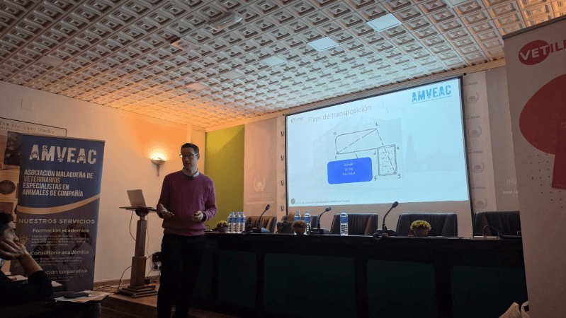 El pasado martes 24 de marzo, la Asociación Malagueña de Veterinarios de Animales de Compañía (AMVEAC) celebró en la sede del Colegio de Veterinarios de Málaga una sesión formativa centrada en técnicas avanzadas de cirugía reconstructiva en pequeños animales, bajo el título Flaps cutáneos: ¿Cómo puedo mejorar mis resultados?