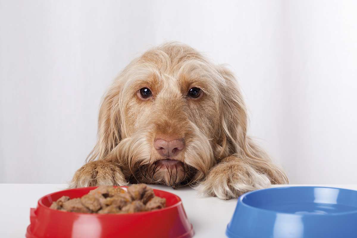 ● Cantidad y horario. La ración diaria debe administrarse en 2-3 porciones a tiempos fijos de alimentación. Verter agua tibia sobre alimentos secos puede mejorar la aceptación de algunos perros.