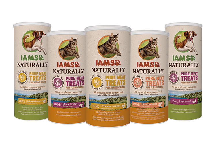 La gama IAMS Naturally Freeze dried está disponible también en dos sabores más para gatos (100% pollo y 100% salmón), y dos para perros (100% pechuga de pato y 100% pechuga de pollo). De esta manera, las nuevas golosinas liofilizadas completan la gama IAMS Naturally, que proporciona a gatos y perros una dieta 100% completa y equilibrada, completando la gama seca y húmeda.