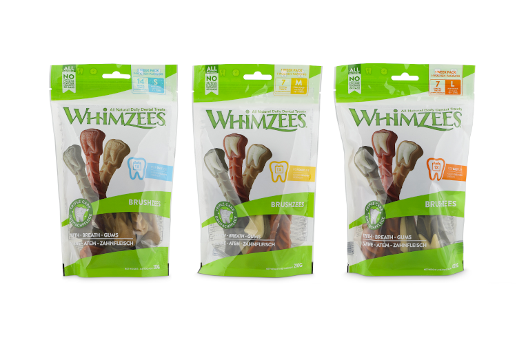 Whimzees Brushzees es sinónimo de ingredientes naturales de gran calidad. Todos los snacks de Whimzees se elaboran sin cereales, sin gluten, libres de GMO y son vegetarianos e hipoalergénicos. Son bajos en grasas y calorías para que puedas dar a tu perro un snack dental de forma diaria y mantener ...