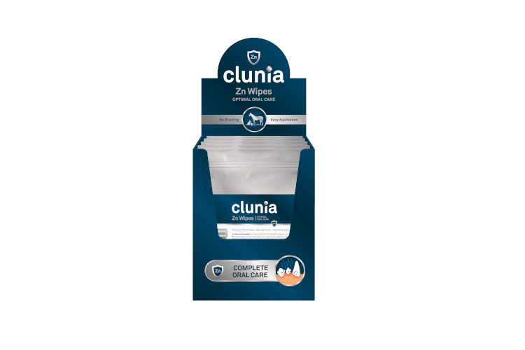 VetNova lanza CLUNIA Zn 10 Wipes, el nuevo formato de su popular línea de cuidado oral, en sobres de 10 unidades.