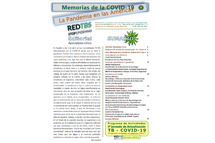 Desde la Red TBS – Stop Epidemias siguen trabajando a diario y lanzan su último número de la revista digital Memorias de la COVID-19. La Pandemia en las Américas, correspondiente al número 17. De nuevo, esta edición nos acerca la realidad y la perspectiva de cómo se desarrolla la pandemia en esta parte del mundo.