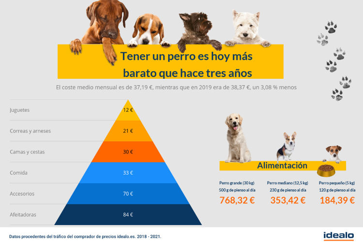 Las protectoras siempre han resaltado estas ideas y subrayan que, aunque adoptar a este compañero peludo no acarrea ningún tipo de coste, los cuidados del nuevo inquilino sí. De hecho, según el último estudio del comparador de precios idealo.es, un perro suele costar unos 37,19 € de media al mes. ...