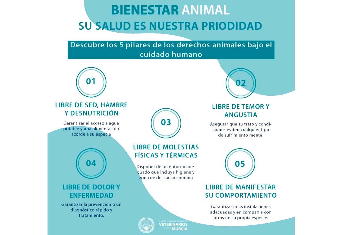 Por ello, en esta campaña de concienciación el Colegio de Veterinarios se centra en los cinco pilares del bienestar animal que son: