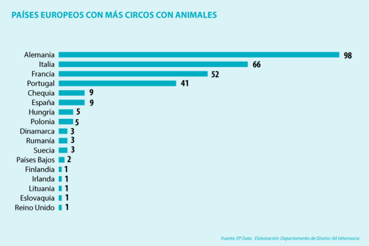 El país de Europa que encabeza el ranking de más circos con animales, según Eurogroup For Animals, es Alemania con 98 circos, seguido de Italia con 66 y Francia con 52. España se sitúa en la quinta posición, muy por debajo, con un total de 9 circos con animales. Hay muchos países de Europa que prohíben los circos con animales como Austria, Bélgica, Bosnia y Herzegovina, Bulgaria, Dinamarca, Finlandia, los Países Bajos, Noruega o Suecia.