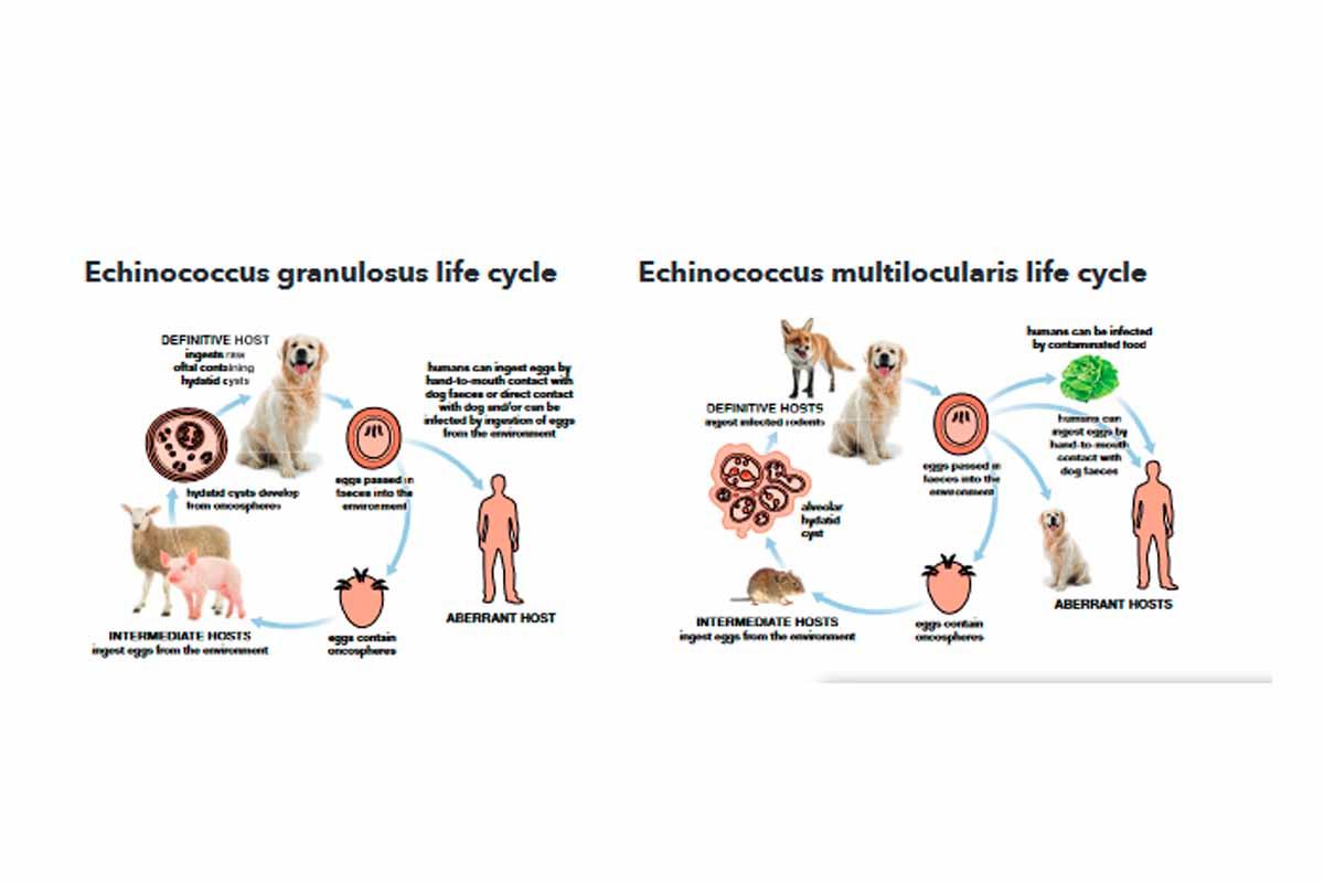 • Las principales especies de importancia médica mundial son Echinococcus granulosus causante de equinococosis quística (en todo el mundo) y Echinococcus multilocularis causando equinococosis alveolar (hemisferio norte).