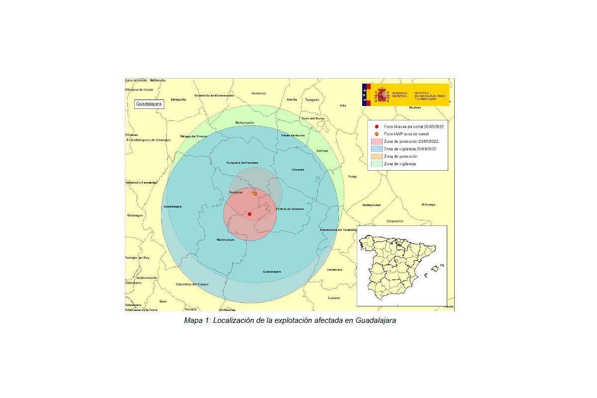 Se trata de una explotación de ponedoras en el municipio de Guadalajara, con un censo aproximado de 150.000 animales, distribuidas en 4 naves. La sospecha de la enfermedad vino derivada por la detección y comunicación de un incremento anormal de la mortalidad el pasado 17 de septiembre en una de las naves. Las muestras tomadas durante la visita de inspección oficial llevada a cabo por parte de los Servicios Veterinarios Oficiales (SVO) de la Junta de Castilla-La Mancha se remitieron al Laboratorio Central de Veterinaria de Algete, como Laboratorio Nacional de Referencia de la Influenza aviar en España, donde se ha confirmado que se trata de una cepa de IAAP subtipo H5N1.