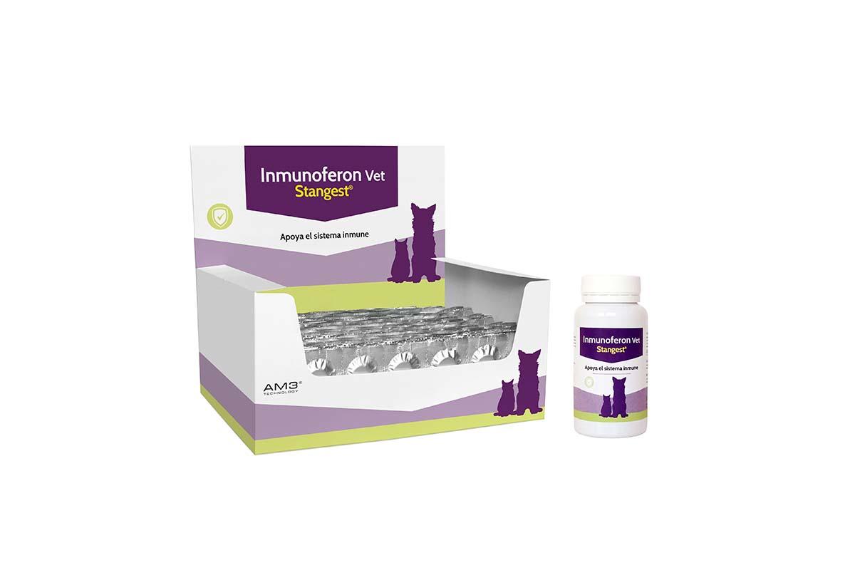 La compañía veterinaria Stangest acaba de presentar al mercado el nuevo Inmunoferon Vet, un suplemento nutricional para reforzar la función del sistema inmune de perros y gatos, formulado con la Tecnología patentada por Cantabria Labs, AM3.