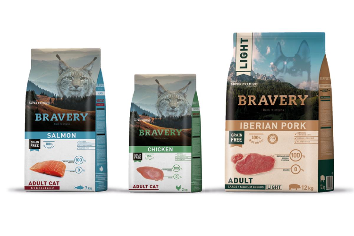 Sus 36 referencias para perros y 22 para gatos sitúan a Bravery como la marca con el mayor surtido dentro de la categoría `Grain free & Monoproteica´. Para perros, tienen hasta seis sabores y cinco formatos diferentes; mientras que, en gatos, cuentan con tres sabores y tres formatos.