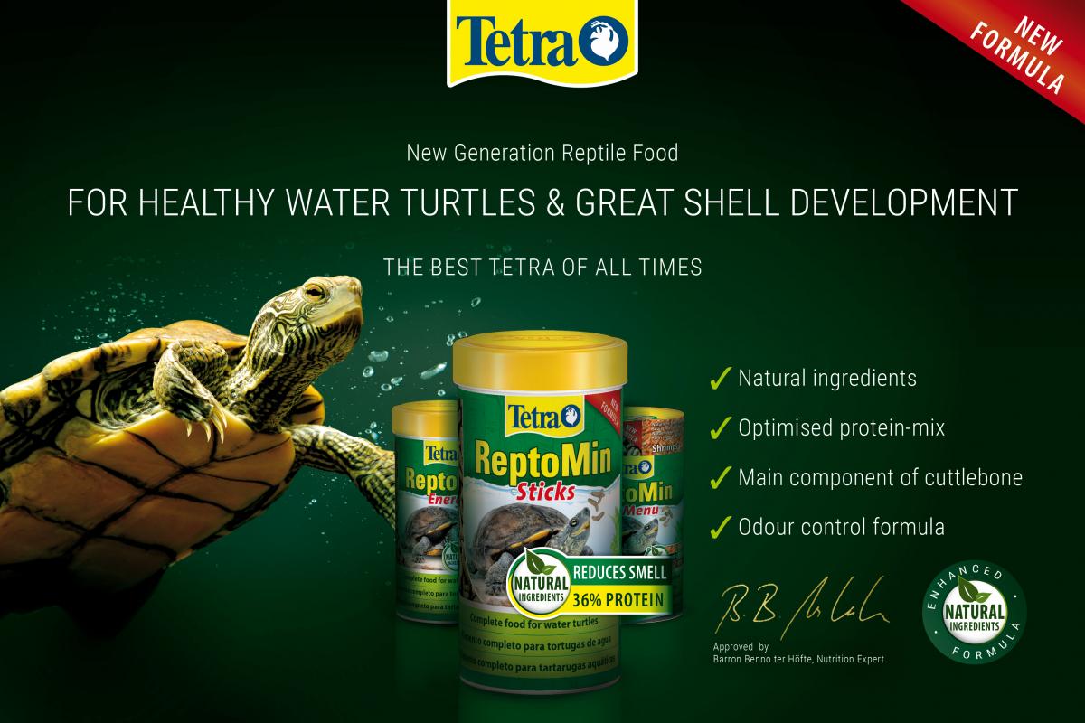 Tetra, empresa líder del mundo acuático, lanzó el primer alimento para la alimentación de las tortugas acuáticas en el 1974; desde entonces el Tetra Reptomin ha marcado un antes y después en la alimentación de estas mascotas tan especiales y longevas que requieren una alimentación adaptada a sus etapas vitales y tratamientos específicos para gestionar correctamente el acuaterrario, que en muchas ocasiones se convierte en una dificultad para los Consumidores menos informados.