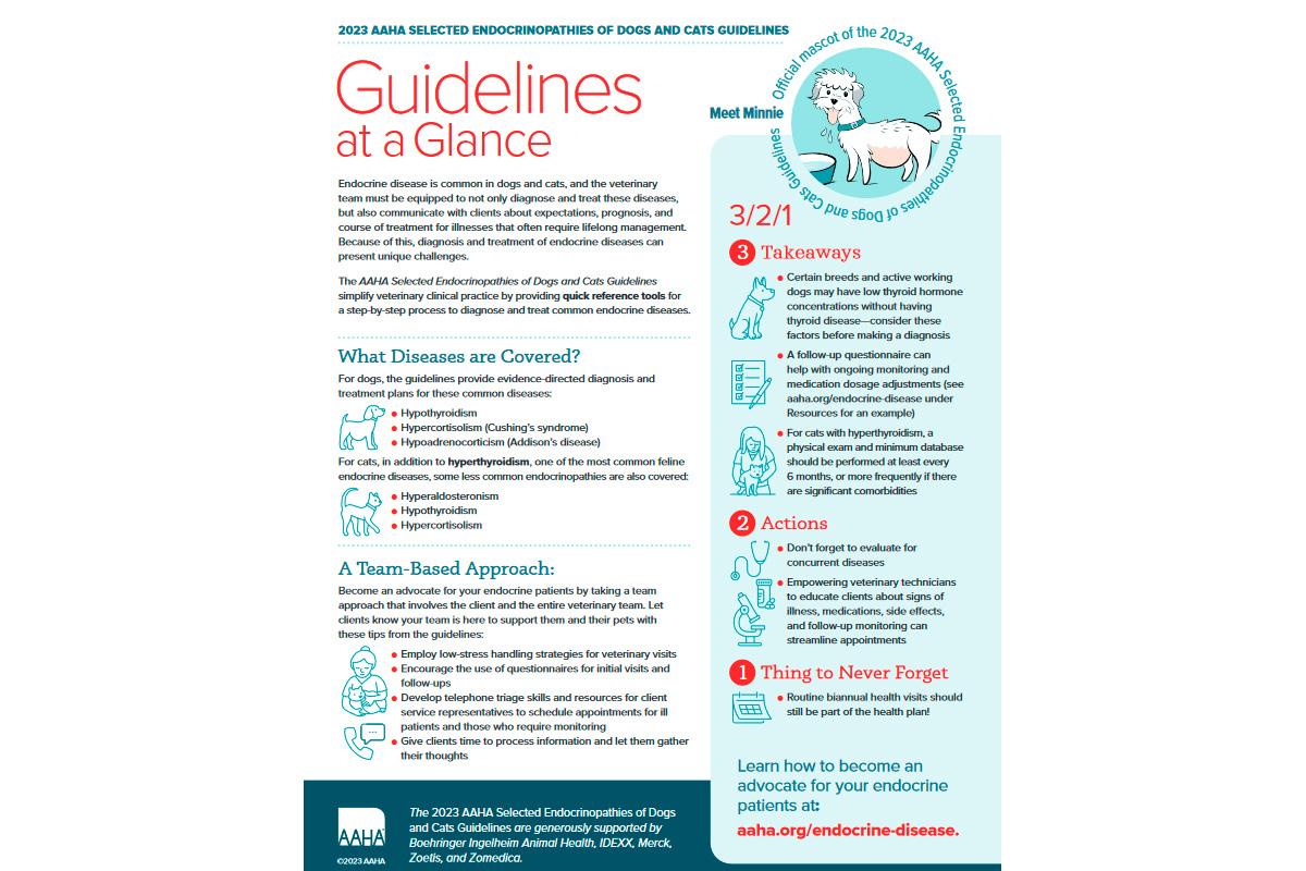 Las Directrices sobre endocrinopatías seleccionadas de perros y gatos de la AAHA simplifican la práctica clínica veterinaria al proporcionar herramientas de referencia rápida para un proceso paso a paso para diagnosticar y tratar enfermedades endocrinas comunes.