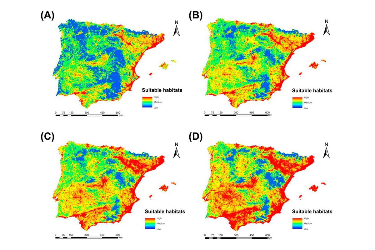 El riesgo de infección es alto en la costa este y sur de la Península Ibérica y las Islas Baleares, así como en las áreas cercanas a las cuencas de los principales ríos, mientras que el riesgo es más bajo en las zonas de mayor altitud. Además, las proyecciones futuras basadas en escenarios de cambio climático indican un potencial aumento en la distribución del mosquito Cx. pipiens, lo que aumentaría el riesgo de infección.