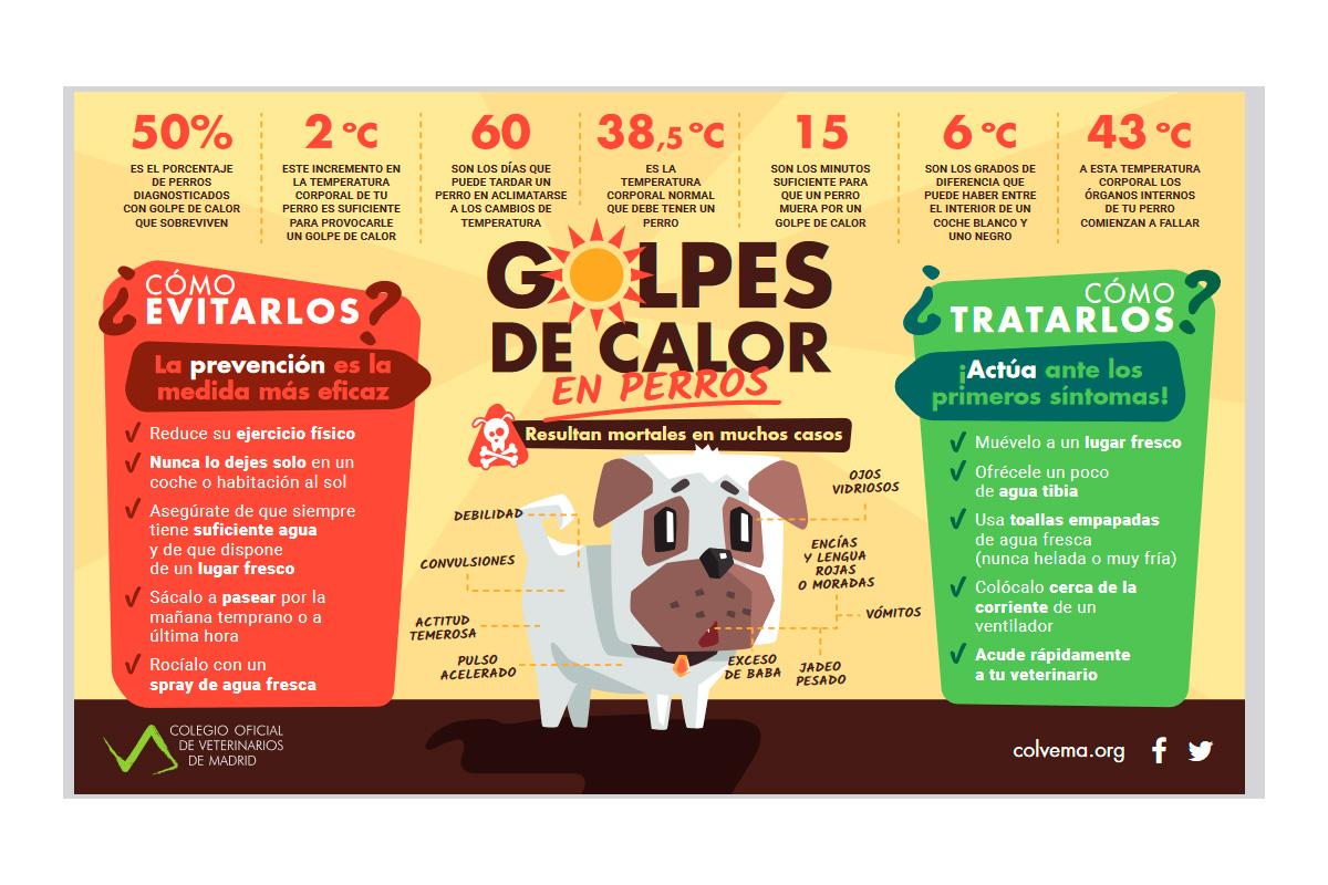 Por ello, desde el Colegio de Veterinarios de Madrid, ha desarrollado esta práctica infografía (VER) que animan a compartir en los medios de comunicación y redes sociales tanto de los profesionales veterinarios como de los propietarios de mascotas, de forma que se puedan evitar al máximo estos "golpes de calor", que se siguen produciendo y desafortunadamente son fatales en muchos casos.