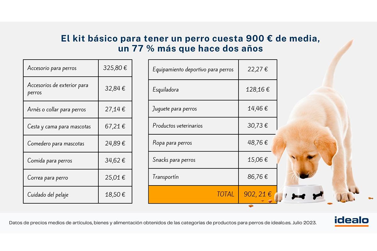 En el informe destacan que dicho aumento implica que los españoles deben desembolsar hasta 900 € para adquirir un kit básico que incluye una variedad de accesorios para perros, como arneses o collares, cestas y camas para mascotas, comederos, comida, correas para perros, servicios de peluquería canina, equipamiento deportivo, esquiladoras, juguetes, vacunas, productos y servicios veterinarios, transportines, entre otros elementos necesarios.