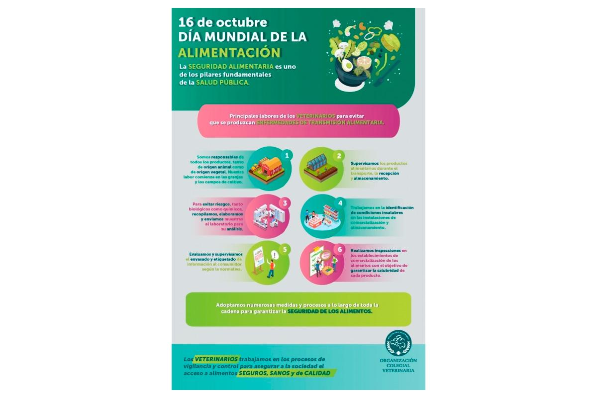 Con motivo del Día Mundial de la Alimentación, que se celebra cada 16 de octubre, la Organización Colegial Veterinaria (OCV) destaca el papel de los más de 10.000 veterinarios ejercen cada día su labor en nuestro país dentro de este ámbito, para evitar que se produzcan enfermedades de transmisión alimentaria.