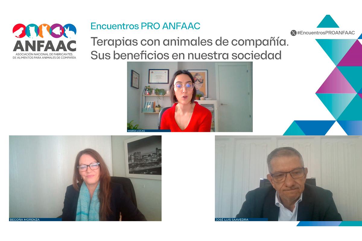 Los beneficios probados de estas actividades fueron el hilo conductor del seminario web `Encuentros PRO ANFAAC: Terapias con animales de compañía. Sus beneficios en nuestra sociedad´, recientemente organizado por la Asociación Nacional de Fabricantes de Alimentos para Animales de Compañía (ANFAAC). En él participaron Begoña Morenza, especialista en intervención asistida con animales de compañía (IAA) y socia fundadora y directora general de la Fundación Yaracán, y José Luis Saavedra, director general del centro Lleó XIII, en el que, a través de la plataforma `Respétame´, se realizan terapias con perros y gatos, especialmente con colectivos con necesidades especiales.